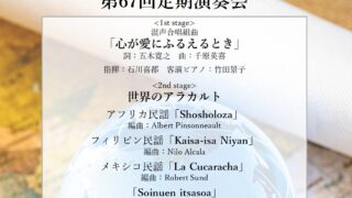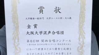 演奏会情報 大阪大学混声合唱団 第67回定期演奏会 ◼日時:2025年12月28日(日) 開場 16:00 開演 16:30 (18:50頃終演予定)◼場所:茨木市文化・子育て複合施設おにクル4階 ゴウダホール (大ホール)◼入場料 :800円 ※全席自由 当日券あり※差し入れ等は受付にて承... 2025.10.17 演奏会情報